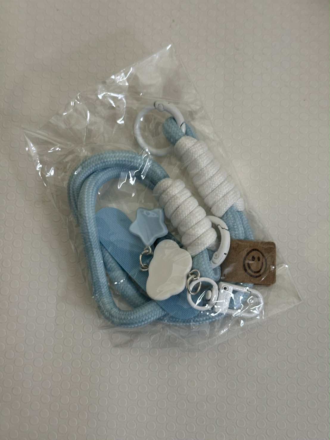 雙簧扣手機鏈,搭配白色無語雲朵與星星掛件,INS風設計簡約又可愛,可作為手機掛繩、鑰匙扣或相機掛鏈,多功能又百搭。